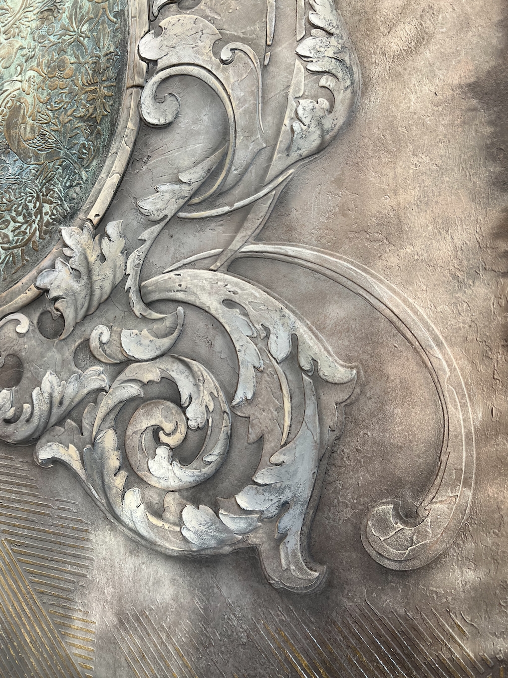 - трафаретную винтажную технику с лессировками